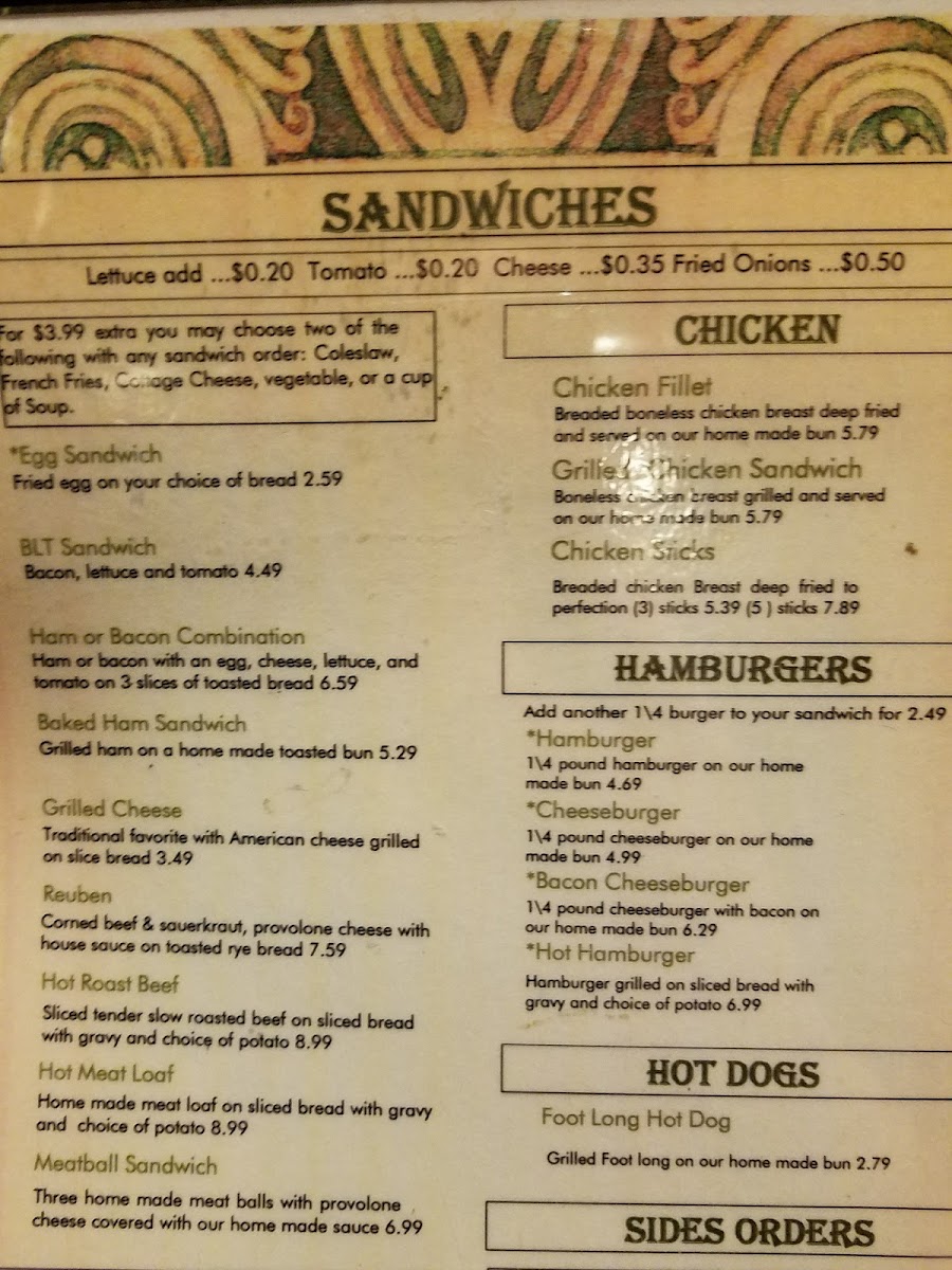 Breakfast favorites like omelets and French toast bring simple, familiar flavors, perfectly suited to a welcoming atmosphere where people gather to enjoy easy-going meals. The menu extends into casual sandwiches and homestyle fare, with options such as the Steak Hoagie, Reuben Sandwich, and a satisfying Beef Burger—items that feel right at home whether you're grabbing a quick bite or lingering over a meal with family.